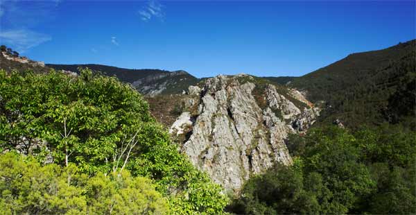 Área recreativa fluvial. Zona de montaña en la sierra de Penácaros a orillas del embalse de Arbón en la desembocadura del río Muñón. El área abarca ambas riberas y está cubierta por álamos, castaños y madroños.